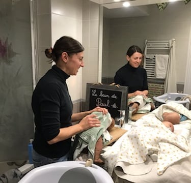 * Paul adore le bain (toujours enveloppé !) et apprécie sa petite musique relaxante ! Maintenant sa grande sœur est aussi des nôtres et à la lourde tâche d’arroser les pieds de son frère :) Agathe